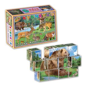 Комплектът кубчета с горски животни съдържа 12 броя кубчета с размери 4 x 4 cm. С тях може да се наредят шест картинки на горски животни –