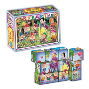 Комплектът кубчета Снежанка и седемте джуджета съдържа 12 броя кубчета с размери 4 x 4 cm. Те дават възможност да се подреждат шест картинки