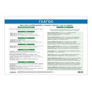 Ученическото табло съдържа важна информация за видовете глаголи и техните времена. Таблото е двустранно ламинирано, с лайсни и въженце.