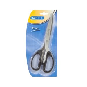 Ножица с ергономична пластмасова дръжка с гумено покритие и остриета от закалена стомана. Идеална за всекидневна употреба в офиса и дома.