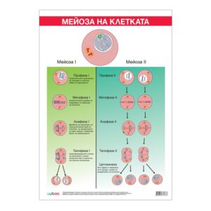 Двойноламинирано табло. Размер: 70 x 100 cm. Какъв е механизма на образуването на половите клетки? Кои са етапите? Каква е разликата между