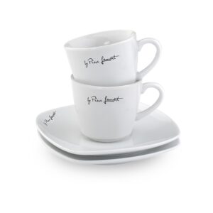 Бяла порцеланова чаша за кафе с чинийка. Подходяща за употреба в микровълнова фурна и съдомиялна машина. Вместимост: 90 ml. 2 броя в опаковка.
