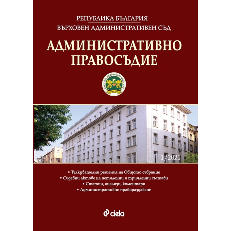 Съдържание на брой 1/2021 г.: • Проект „Оценка на ефективността на съдебния контрол върху актовете на администрацията. Мерки за преодоляване на нарушеното право на справедлив процес“ – Правила за текущ мониторинг и оценка на съдебната практика на административните съдилища и Върховния административен съд по отношение ефективния съдебен контрол и правото на достъп до съд (част 2); • Тълкувателни решения и определения на Общото събрание на колегиите от Върховния административен съд и Върховния касационен съд; • Тълкувателни решения и определения на Общото събрание на колегиите на Върховния административен съд; • Решения и определения на Вас.