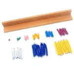 Продуктът се състои от 55 верижки с цветни мъниста и рамка за закачане на стена. На рамката има 10 кукички, на които се закачат верижките. Нанизите са съответно 1 брой с 1 мънисто, 2 броя с 2 мъниста, 3 с 3 мъниста и така до 10 броя с по 10 мъниста. Чрез заниманията с този материал децата по интересен и забавен начин се запознават с количествените измерения на различните цифри. Освен това те се научават да разпознават и подреждат числата. А самото закачване на кукичките се развива фината моторика. Размер на рамката: 42х4,4х4,6 см, тегло 0.5 кг. Подходящо за деца над 3.5 години.