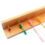 Продуктът се състои от 55 верижки с цветни мъниста и рамка за закачане на стена. На рамката има 10 кукички, на които се закачат верижките. Нанизите са съответно 1 брой с 1 мънисто, 2 броя с 2 мъниста, 3 с 3 мъниста и така до 10 броя с по 10 мъниста. Чрез заниманията с този материал децата по интересен и забавен начин се запознават с количествените измерения на различните цифри. Освен това те се научават да разпознават и подреждат числата. А самото закачване на кукичките се развива фината моторика. Размер на рамката: 42х4,4х4,6 см, тегло 0.5 кг. Подходящо за деца над 3.5 години.