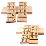 Комплектът кубчета с цифри съдържа 12 броя кубчета с размери 4 x 4 cm. На тях има изобразени 72 броя цифри, знаци и картинки. Те дават