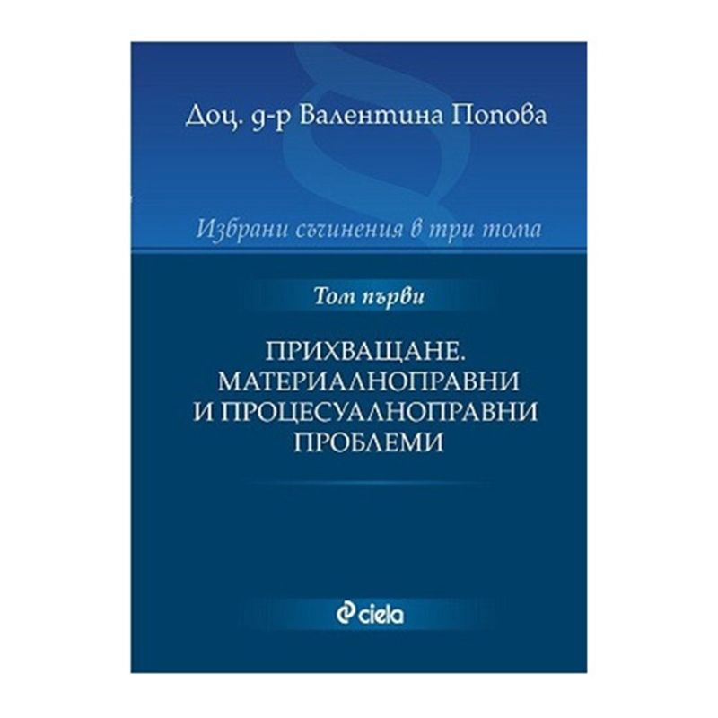 Настоящото издание е първа част на трилогията с избрани съчинения на доц., д-р ВАЛЕНТИНА ПОПОВА, доцент по граждански процес (гражданско изпълнително производство) в ЮФ на СУ „Св. Кл.Охридски”, адвокат, синдик. Първият том е посветени на прихващането. Вторият – на несъстоятелността, а третият съдържа избрани студии и статии на авторката. В „Прихващане. Материалноправни и процесуалноправни проблеми“ са поместени две монографии – „Прихващане. Материалноправни проблеми“ и „Възражението за прихващане в съдебния исков процес“. За първата книга това е трето непреработено издание. За втората, която впрочем е и успешно защитена дисертация на авторката, това е второ непреработено издание. Поради изчерпването на тиражите и големия интерес на читателите към тези съчинения Сиела, със съгласието на авторката, публикувана съчиненията в оригиналния им вариант. Умелото съчетаване на научния и ориентирания към практиката подход при анализа на поставените проблеми, обуславя добрия прием на застъпените тези в съдебната практика, независимо от динамиката в изменението на нормативната база и актуалността на идеите към днешна дата за практикуващите юристи. Издателство: Сиела. Година на издаване: 2010. Брой страници: 820. Автор: Валентина Попова. Вид на корицата: мека.