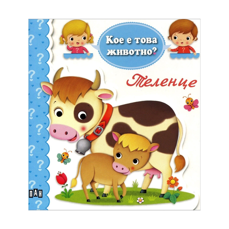– Какво е това животно? – Какво прави? – Не са ли всички крави кафяви?- Какво мирише така? – Какво прави фермерът? На тези и още много детски въпроси отговарят книжките от поредицата „Кое е това животно?“ Красивите илюстрации и простичките обяснения помагат на децата да се запознаят с различни животни и да задоволят любопитството си. Други книжки от поредицата са: Пиленце, Зайче, Пате, Котенце, Кученце.