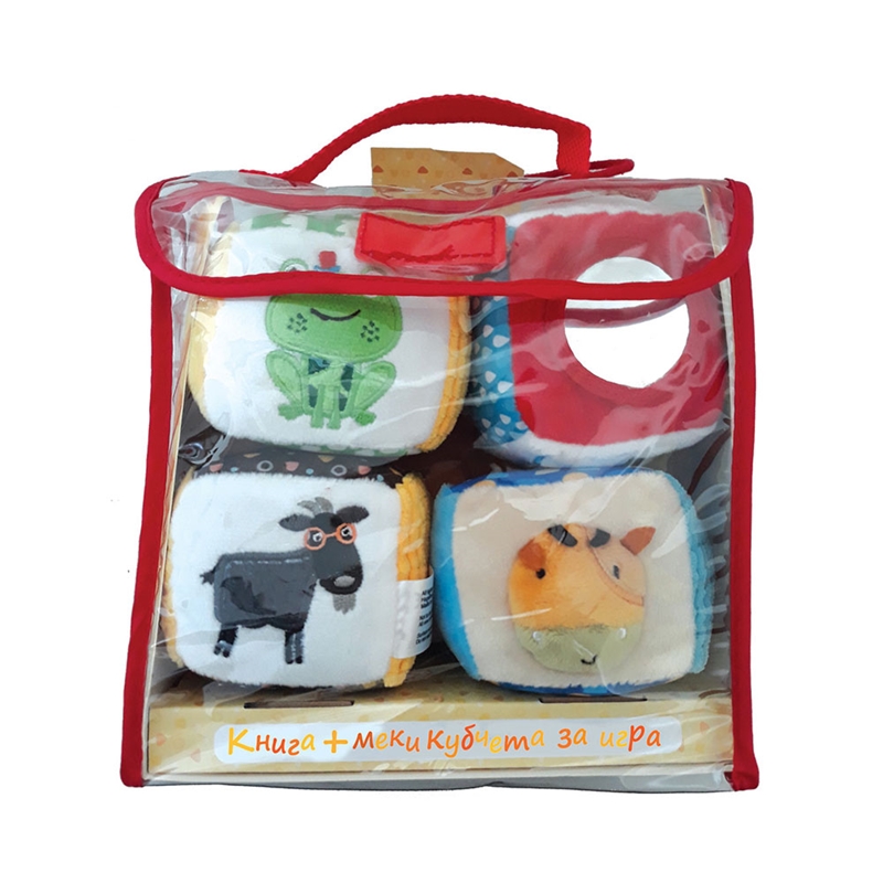 Покани домашните животни у дома с този чудесен комплект! Комплектът, подходящ и за най-малките включва картонена цветна книжка с илюстрации и 4 меки кубчета от плат с мек пълнеж и вградени пискалка, дрънкалка, огледало, метално звънче. С твърди корици. Характеристики: Комплект: 19 х 19 х 10 cm; Книга: 19 х 19 cm; Кубчета: 7 х 7 х 7 cm. Издателство: Фют. Брой страници: 10. Година на издаване: 2020. Формат: 19 х 19 cm.