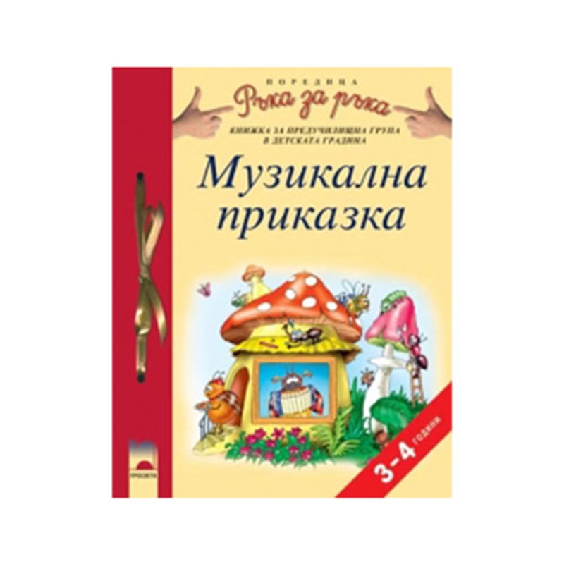 Книжка за 3—4-годишни деца от предучилищна група в детската градина, част от програмната система „Ръка за ръка“. Предоставя: — Условия за постигане на целите и очакваните резултати, заложени в образователното направление „Музика“; — Възможности за ориентиране на детето в звучащата среда като предпоставка за бъдещото изграждане на неговата музикална култура; — Съдържание, структурирано по теми, като от страниците на книжката се изработват: два релефни модула („Чудните къщички“ и „Полянка сцена“), 16 двустранни картинки и две книжки хармоники; — Идеи и варианти за изграждане на начални умения за възприемане и за изпълнение (пеене, свирене и танцуване) на музика; — Възможности за използване на двата модула поотделно или заедно, за обогатяване на комплекта с изображения на други музикални герои; — Методическа концепция, която превръща общуването на детето с музиката в приказка.