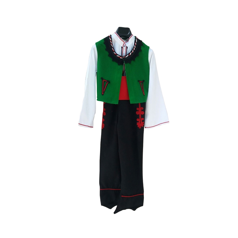 Висококачествена народна носия в зелен цвят, за момче. Идеална за народни танци, театрални постановки и пиеси. Носията е подходяща за деца