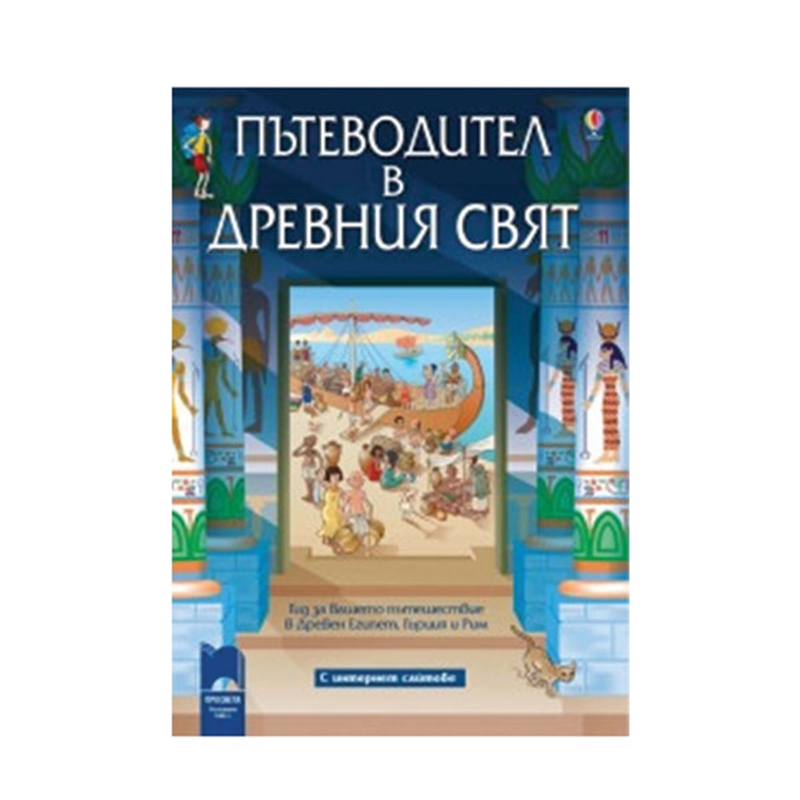 Книгата“Пътеводител в древния свят“ отвежда тийнейджъра от XXI в. на вълнуващо пътешествие в Древен Египет, Гърция и Рим. Туристът във времето ще научи как да се екипира, къде да отседне, с какво да се храни, как да се лекува, ако се разболее. Ще посети гробници и храмове, ще се озове на полето, в работилницата, на пристанището и на пазара, сред управниците и боговете, но и в домовете на обикновените семейства. Ще опознае празниците и забавленията, облеклото и модата, управлението и образованието на древните. Над 500 илюстрации и 4 разгърнати карти допълват ярката картина на древния свят. Приложенията със справки за личностите, хронологиите, подробният речник, показалецът на термините и имената придават на изданието енциклопедичен характер. Уникално помагало с висока образователна стойност за учениците, изучаващи стара история в 7. клас.