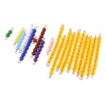 Продуктът се състои от основа с правоъгълна форма и П-образна рамка, която се поставя върху основата. На хоризонталната страна на рамката, в долната й част, има завити двайсет кукички. Освен това в комплекта се съдържат и двайсет наниза с мъниста. Десет от нанизите са с по 10 мъниста, а другите 10 са с различен брой, съответно от 1 до 10. Всеки наниз се закача на определена кукичка. Чрез заниманията с този продукт децата по интересен и забавен начин се научават на количествените измерения на различните цифри. Освен това те се научават да разпознават и подреждат числата. Монтесори рамката за нанизи е чудесен материал, който дава основа за изучаването на алгебра. Чрез закачването на нанизите на кукички децата развиват фината моторика на пръстите си и координацията между очите и ръцете. Размер на кутията: 32 х 11 х 4 cm, тегло 0.5 kg. Подходящо за деца над 3.5 години.