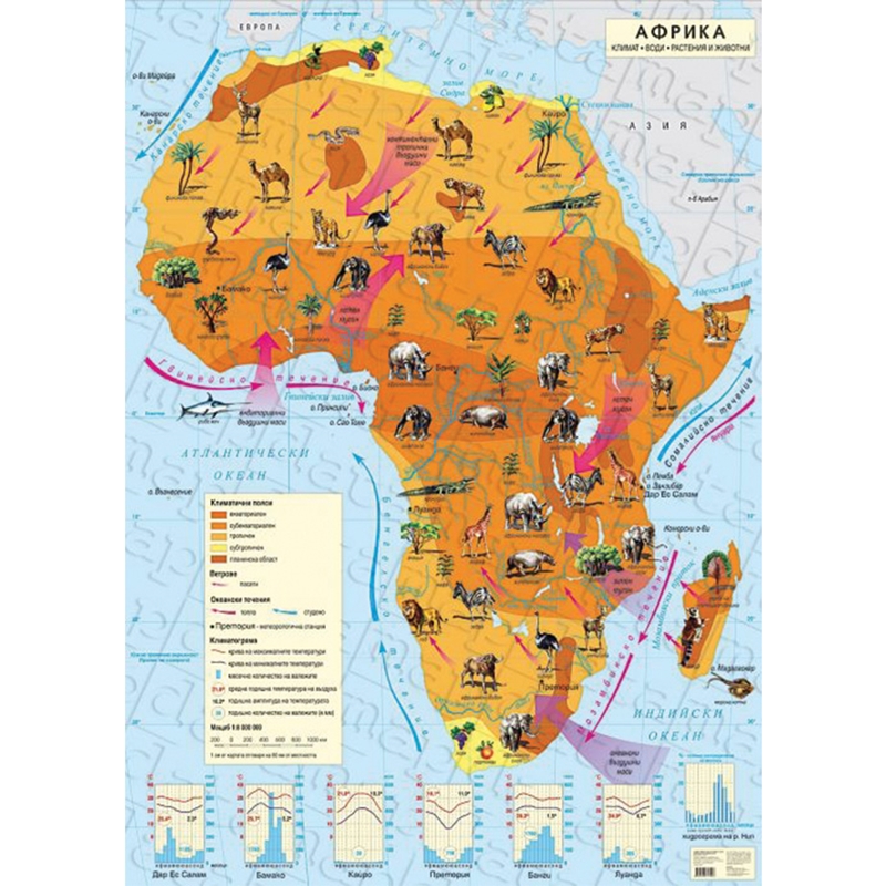Стенна карта на Африка, климатична, 100 x 140 cm, ламинирана