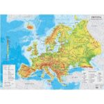 Стенна карта на Европа, физическа, 100 x 70 cm, ламинирана