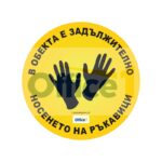 Солвентният дигитален печат е широкоформатен и устойчив при външни условия. Технологията е подходяща за интериорни и екстериорни визии и гарантира качество в изработката. Размер: ø30 cm. Дизайн „Задължително носене на ръкавици“. За да поръчате, моля, пишете на имейл [email protected] или се обадете на 02 976 00 06.