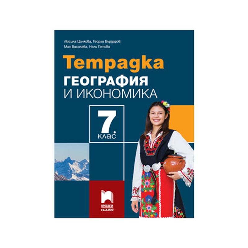 Учебната тетрадка по география и икономика за 7. клас на издателство „Просвета Плюс“ съдържа система от разнообразни по характер и сложност въпроси и задачи. Те покриват цялото съдържание на уроците за нови знания. Организирани са по раздели, теми и урочни единици, като следват логиката на учебното съдържание. Задачите се изпълняват писмено.Чрез въпросите и задачите се постига по-задълбочено разбиране на учебното съдържание, усвояване на понятията, прилагане на знанията и уменията в различни ситуации.Учебната тетрадка може да се използва от учениците по време на учебните часове или при самоподготовка вкъщи.