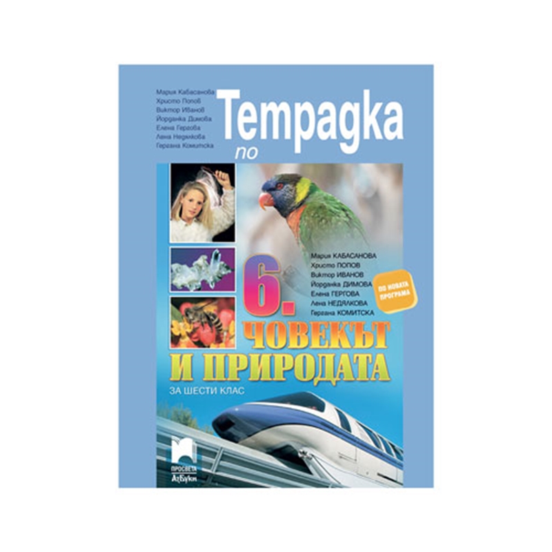 УЧЕБНАТА ТЕТРАДКА по човекът и природата за 6. клас на издателство „Просвета АзБуки” е помагало, което допълва и разнообразява работата по темите в учебника. В нея са включени задачи, които подпомагат усвояването на основните понятия и изискват извършване на разнообразни учебни дейности.Съдържанието на тетрадката дава възможност тя да бъде използвана в различни форми на работа както групово по време на урока, така и индивидуално в клас и у дома.