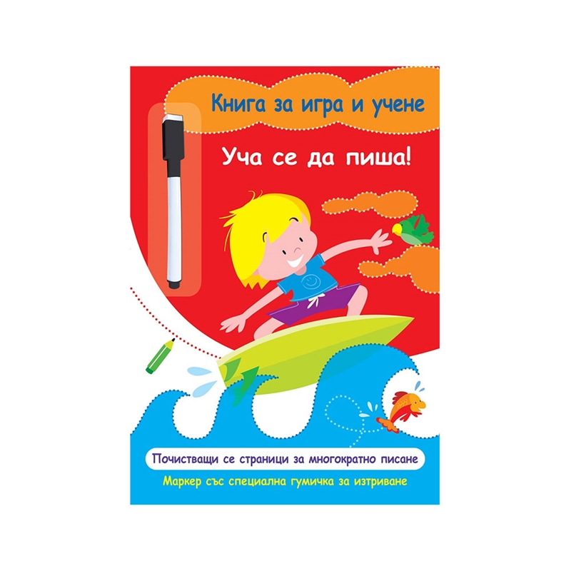 С книгата децата бързо ще усвоят изписването на различните елементи на буквите и ще тренират движенията на ръката, важни за писането. Написаното се изтрива със суха кърпа или с гумичката на маркера, който е подарък към книжката. С меки корици, част от поредицата „Книга за игра и учене“. Автор: колектив. Издателство: Фют. Брой страници: 14. Година на издаване: 2020. Формат: 21 x 29 cm.