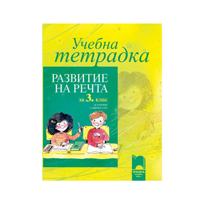 Учебната тетрадка по развитие на речта за 3. клас за ученици с увреден слух подпомага затвърждаването на знанията и уменията, заложени в учебника. Нагледната база отстъпва място на речевите упражнения, в които децата развиват своите комуникативни способности и умения за пресъздаване на съдържанието на изучаван текст чрез отговори на въпроси и свързани писмени изложения. Активно се използва личният опит на децата, което ги мотивира и повишава интереса им към учебното съдържание.