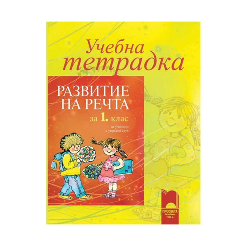 Учебната тетрадка по развитие на речта за 1. клас за ученици с увреден слух подпомага затвърждаването на знанията и уменията, заложени в учебника. Предлагат се разнообразни практически упражнения с богата нагледна база и тясна връзка с изобразителното изкуство и предметно-практическата дейност на децата, което стимулира интереса им към учебното съдържание.
