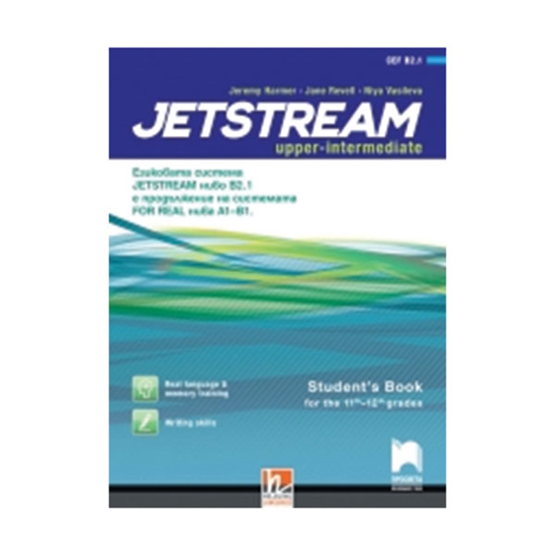 Езиковата система JETSTREAM ниво B2.1 е продължение на системата FOR REAL нива А1 – В1.JETSTREAM е езикова система, която съчетава мотивиращи теми, съвременен език и разнообразни образователни задачи.JETSTREAM подтиква учениците да станат активни участници в учебния процес чрез рубриките за споделяне на личен опит (You first!), търсене на допълнителна информация (Search online) и записване на видеоклип по дадена тема (Video option).В JETSTREAM граматиката се въвежда плавно и логично, в контекст, с достатъчно на брой примери от живия език. JETSTREAM възпитава учениците в духа на толерантност, междукултурно общуване и интерес към ключови произведения на световното кино и литература. Включените в учебника теми са изцяло съобразени с интересите на учениците, като подтикват към формиране и убедително изразяване на мнение на чуждия език.Учебникът JETSTREAM В2.1 за 11. – 12. клас:Съдържа 7 модула с по два урока, всеки от които се състои от въвеждаща страница, 3 подурока и страница, посветена на дадена комуникативна функция. Уроците са градирани по трудност и съдържат съвременни текстови формати и разнообразни задачи за трениране на четирите езикови умения. След всеки два урока е поместен преговорен урок за затвърждаване на изучената в тях лексика и граматика.Предлага рубриката Aspects of culture, която представя даден аспект от чуждоезиковата култура, който след това се съпоставя със съответстващ български културен феномен.Съдържа рубрика Writing tasks, която предоставя на учениците подробни указания за създаване на различни типове текст.Включва раздел Grammar Reference в края на учебника, който служи като удобен справочник с подробно представяне на граматичния материал и множество примери.Съдържа подробен поурочен речник с фонетична транскрипция и превод на български език.