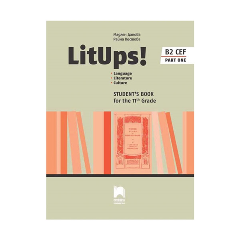 LitUps! – B2 – Student’s Book – Part One – Language – Literature – Culture for the 11th Grade – Просвета – 2020-2021Какво свързва Колридж и Iron Maiden? А Шекспир и Sting?На този и много други любопитни въпроси отговаря първата част на учебника за профилирана подготовка по английски език LitUps! за 11. клас. Преминавайки през неговите 320 страници, учениците ще изминат интригуващи маршрути от литературната класика на Великобритания и САЩ. Учебникът развива четирите езикови умения и постига целите на програмата чрез разнообразни дейности, в които учениците:четат и слушат неадаптирани художествени текстове и после ги обсъждат в контекста на съвременната популярна култура (поп и рок музика, кино, комикс, социални мрежи и пр.);обогатяват речника си с лексика, която ще им помогне да следят световни медии като BBC и CNN, The Times и The Guardian, както и да гледат без субтитри дори най-сложните филми;се научават да изразяват убедително на английски език своята естетическа и гражданска позиция по въпроси, свързани с културната история и с проблемите на съвременното общество;овладяват различни художествени и публицистични жанрове: писмо, рецензия, интервю, сценарий, есе, разказ и пр.;поставят пиеси, организират сватбени церемонии, участват в детективски разследвания, пътешестват, водят собствен блог, подреждат виртуален музей и пр.В края на учебника е включено приложение под формата на учебна тетрадка, което покрива граматичния материал в модулите „Устно общуване” и „Писмено общуване” на учебната програма. Приложението развива езиковите знания и умения на учениците чрез задачи от типа четене с разбиране, попълване на пропуснати думи (cloze test), правилна употреба на граматични форми и конструкции (sentence completion), трансформация на изречения (sentence transformations), както и задачи за превод и за трениране на лексиката. Едновременно с това всички текстове предлагат допълнителна информация по изучаваните теми чрез разнообразни литературни жанрове: статии, рецензии, биографии, откъси от произведения и литературна критика. Приложението може да се използва за подготовка на учениците както за матурата по английски език, така и за приемните изпити в български и чужди висши учебни заведения.