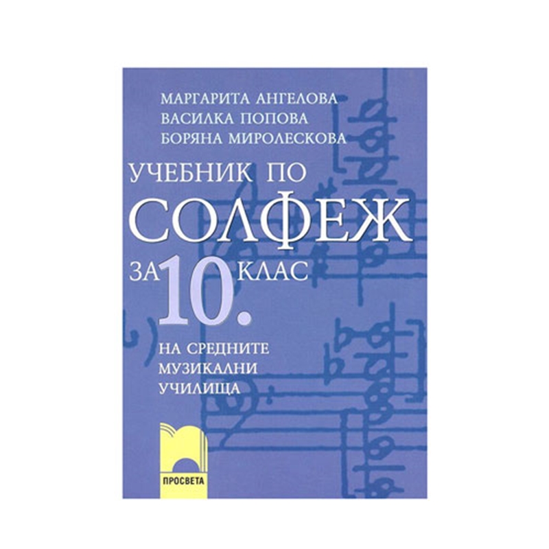 Учебник по солфеж за 10. клас на средните музикални училища. Съдържа 200 страници с учебен материал и обособени меки корици. Автори: Маргарита Ангелова, Василка Попова, Боряна Миролескова. Издателство: Просвета. Формат: 17 х 24.