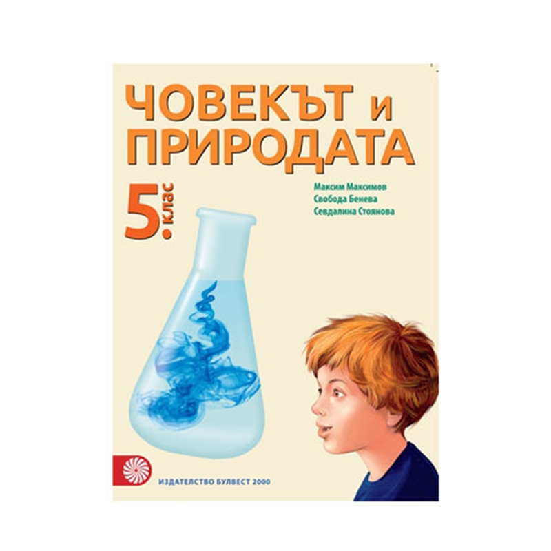 В 5. клас, срещата с предмета „Човекът и природата“ е полезна и вълнуваща. Учениците по интересен и достъпен начин постепенно ще разкриват научни истини за редица физични явления, за свойствата и приложението на веществата около нас, за жизнените процеси при растенията, животните и човека. Всички уроци за нови знания са придружени от въвеждаща рисунка за добро настроение, последвана от кратък текст с най-важното от урока. В увода, учащите трябва да си припомнят вече изученото по темата и се насочват към новия учебен материал, разделен на точки за по-добра организация. Има различни карета с допълнителна информация за любознателните, с пояснителен текст, с ключови фрази или думи за търсене в интернет, с важни нови понятия или непознати думи. Проверката какво е научено и разбрано, може да стане с помощта на задачи с кодове – „Да проверя какво съм научил от урока“,“Да приложа наученото“, „Експериментална задача“, „Самостоятелно проучване в интернет, в енциклопедии и в друга учебна литература“. В уроците за лабораторна работа са описани уредите и материалите, необходими за експериментите. Дадена е последователност на работа, като указанията водят стъпка по стъпка към изпълнението на задачата. Таблицата трябва да бъде пречертана в тетрадката и да бъде попълнена с експериментални данни. Дадени са примерни, които предоставят готови данни във вид на рисунка, схема, попълнена таблица с резултати или трафика. В края на урока са посочени домашни опити, които трябва да бъда извършени с подръчни материали самостоятелно или с родител вкъщи. По време на учебни екскурзии, преподавателите по човекът и природата трябва да организират наблюдение на Луната, звездите и други природни обекти за учениците от 5. клас. Специалните уроци с подробни планове и точни ориентири ще бъдат в помощ при разработването на проекти по различни теми от учебното съдържание. След всяка от трите части на учебника в рубриката „Проверете какво сте научили“ учениците ще изпълняват разнообразни задачи – попълване на таблици, разчитане на графики, ще подреждат правилно разместени букви, ще решават тестови задачи с избираем или свободен отговор. Учебното съдържание по човекът и природата е богато илюстровано и увлекателно поднесено в този учебник. Учебната система по човекът и природата за 5. клас се състои от:- учебник – учебна тетрадка