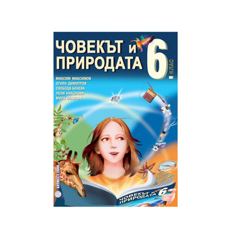 Учебник по човекът и природата за 6. клас. Съдържа 168 страници с актуален учебен материал. Автори: Максим Максимов, Огнян Димитров, Свобода Бенева, Лени Николова, Мира Славова. Издателство: Булвест 2000. С меки корици.
