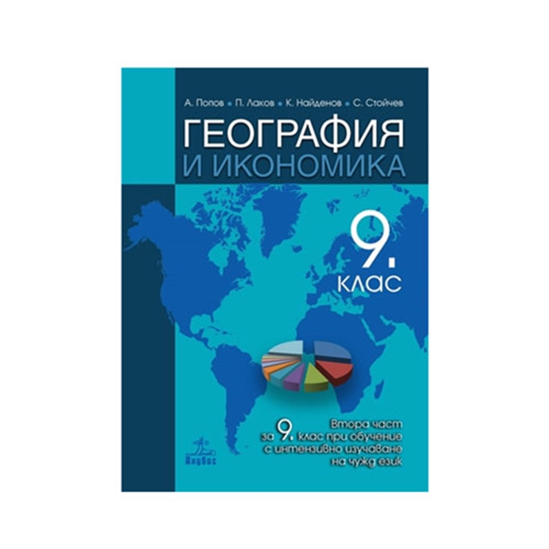 Учебник по география и икономика за 9. клас – част 2. Подходящ при обучение с интензивно изучаване на чужд език. Съдържа актуален учебен материал. Автори: A. Попов, П. Лаков, К. Найденов, С. Стойчев. Издателство: Анубис. Година на издаване: 2018.