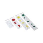 Тези шаблони са допълнение към материала – Математически конуси. Всяка от картите обозначава частите от формите на конусите – цяло, ?, 1/3 и ?. Различните цветове съответстват на тези от конусите. Съответно всяка цветна карта трябва да се съпостави с картата, показваща математическото обозначение. Работата с математическите конуси и шаблоните помага на децата по-лесно разберат идеята за частите на цялото. Това е подготовка за въвеждане в математиката и за по-лесно смятане в бъдеще на дробни числа. Комплектът съдържа: 14 карти с цветни графични образи (10х10 см) и 11 правоъгълни форми с математическото обозначение (2,5х12,5см) Подходящо за деца над 4 години.