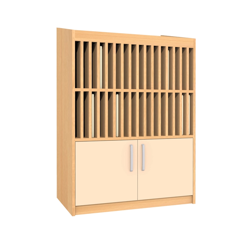 Шкафът е изработен от ПДЧ с меламиново покритие и дебелина 18 mm. Побира до 32 дневника.Размери: 87 х 50 х 125 cm.Гаранционен срок: 2 години. Възможностите за избор на цветове разгледайте от тук.