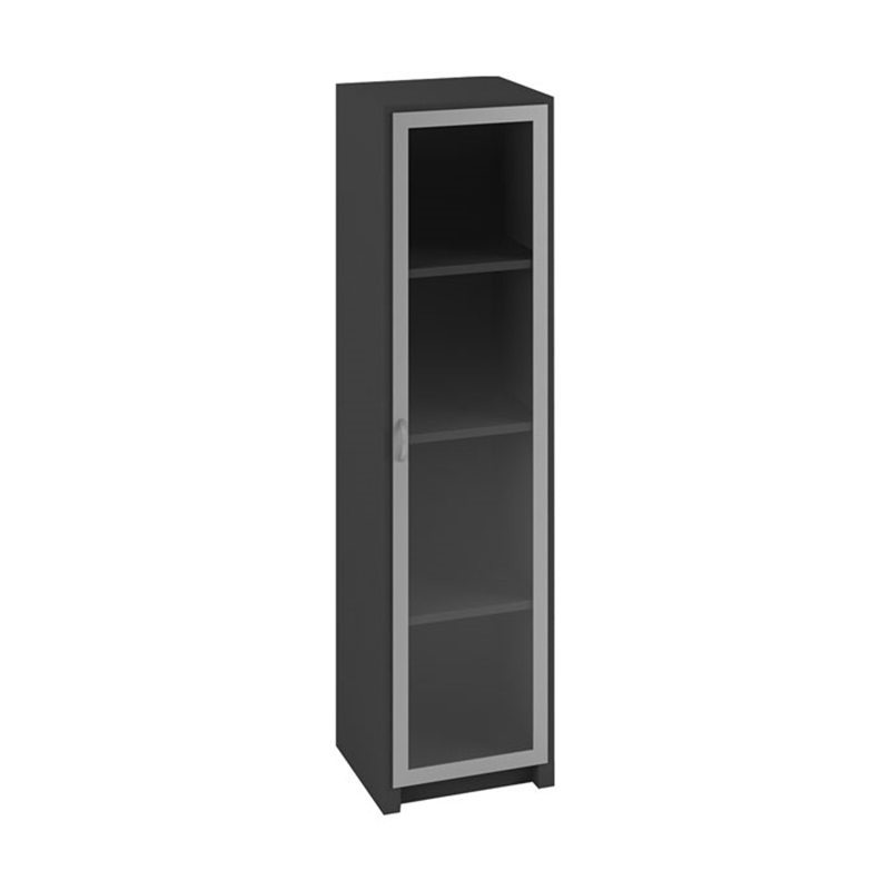 Шкафът е изработен от ПДЧ с меламиново покритие.Стелажите са с плоскости и гръб 18 mm, ПДЧ. Стъклените врати са с алуминиева рамка.Размери: 42 x 40 x 162 cm. Възможностите за избор на цветове разгледайте от тук.