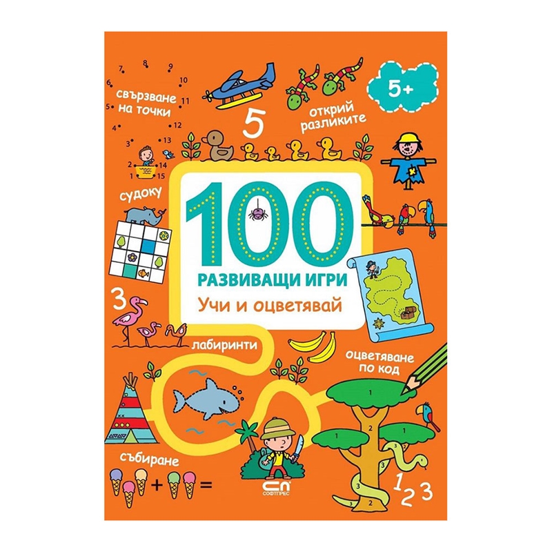 Детето ви ще се забавлява с часове със стоте игри на страниците на книжката! Лабиринти, пъзели, судоку, търсене на разлики, задачки за събиране и упражнения за фината моторика – малчуганът ви ще се захване с удоволствие с всяко едно предизвикателство и неусетно ще учи, докато оцветява.