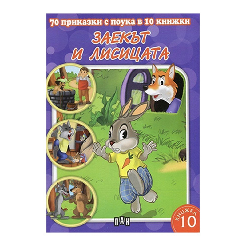 Красиво илюстрираната детска книжка „Заекът и лисицата“ от поредицата „70 приказки с поука в 10 книжки“ на издателство „Пан“ ще зарадва всеки малък любознайко и ще направи четенето още по-приятно. Всяка книжка от поредицата „70 приказки с поука в 10 книжки“ съдържа седем кратки приказки, завършващи с поука. Предназначени са за малки, любознателни деца, независимо дали вече знаят да четат. Когато прочете всичките десет книжки от поредицата, детето ще запомни мъдростта на тези интересни седемдесет приказки.