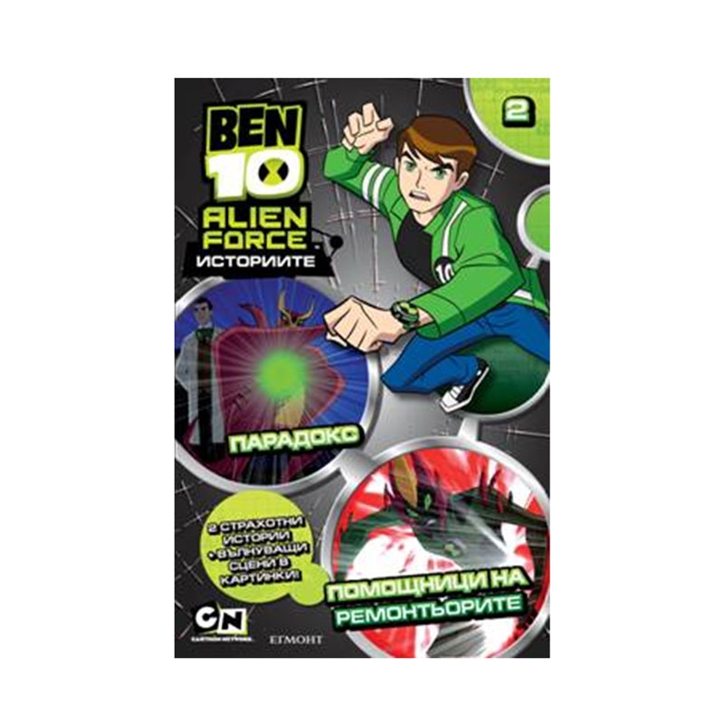Във втората книга от историите „Бен Тен: Извънземна сила“ отново те очакват две приключения! В „Парадокс“ ще се изправиш редом с Бен, Гуен и Кевин пред създание, което пътува през времето. А след това ще проследиш премеждията им, когато ги вземат за извънземни злодеи в „Помощници на ремонтьорите“. Книгата съдържа и осем страници с цветни илюстрации!