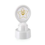 Модерен и практичен кръгъл печат с диаметър 22 mm. Благодарение на своя дизайн, печатът е изключително подходящ като мотивиращо, окуражаващо и стимулиращо средство при ученици, особено в началното училище. Минимум 15 000 броя отпечатъци. Лесно омастиляване. В практична опаковка за защита и съхранение.