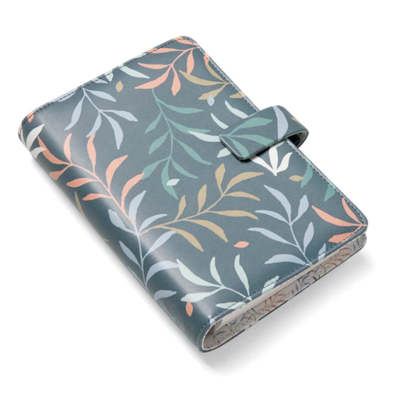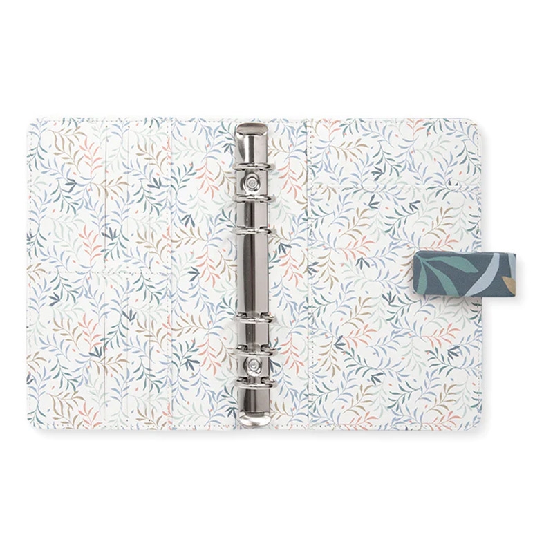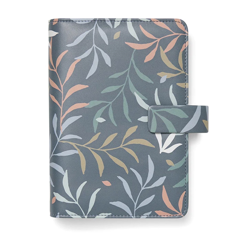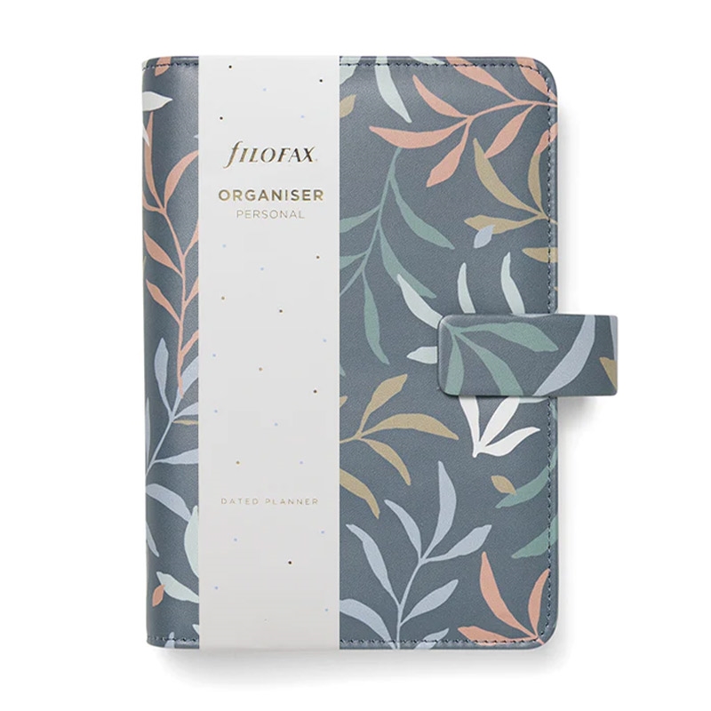 Организирайте ежедневието си с цветната колекция органайзери Botanical с растителни мотиви! Те съчетават традиционния стил на марката със съвременен и функционален дизайн. Органайзерът е изработен от висококачествена синтетична кожа в син цвят. Вътрешната страна на лявата корица разполага с пет джоба за карти и един джоб за документи. Вътрешната страна на дясната корица разполага с джоб за бележник и еластичен държач за химикалка. Метална шина с шест ринга и повдигащ (отварящ) механизъм, 30 mm в диаметър. Размери: Personal, 18.7 х 15.3 х 4 cm. Миксирайте и променяйте съдържанието на всички органайзери Filofax с разнообразието от аксесоари. Подредете ежедневието си изцяло по ваш вкус! Пълнеж на органайзера: Предпазна страница; Преден лист; Рекламна страница; Рекламна страница на Filofax App; Годишен планер без дати; 6 разделителя; 8 листа с точки; 8 нелинирани листа; 8 линирани листа; 8 листа за задачи; 8 листа с контакти; 8 сини линирани листа; 8 зелени линирани листа; 8 розови линирани листа; Прозрачен лист / лист с индекс; Джоб с горно отваряне; Пад с листа на точки (20 листа).