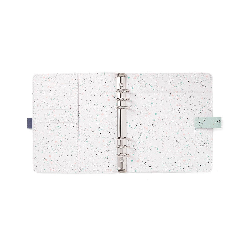 Организирайте ежедневието си с цветната колекция органайзери Expressions в пастелни цветове! Те съчетават традиционния стил на марката със съвременен и функционален дизайн и се отличават със затварянето им с ластик. Органайзерът е изработен от висококачествена синтетична кожа в цвят мента. Вътрешната страна на лявата корица разполага със седем джоба за карти, джоб за доку,менти и елстичен държач за химикалка. Вътрешната страна на дясната корица разполага с джоб за документи, джоб за бележник и еластичен държач за химикалка. Метална шина с шест ринга и повдигащ (отварящ) механизъм, 30 mm в диаметър. Размери: A5, 23.3 х 22 х 4.2 cm. 134 листа. Миксирайте и променяйте съдържанието на всички органайзери Filofax с разнообразието от аксесоари. Подредете ежедневието си изцяло по ваш вкус! Пълнеж на органайзера: Предпазна страница; Преден лист; Рекламна страница; Рекламна страница на Filofax App; Годишен планер без дати; 6 разделителя; 8 листа с точки; 8 нелинирани листа; 8 линирани листа; 8 листа за задачи; 8 листа с контакти; 8 сини линирани листа; 8 зелени линирани листа; 8 розови линирани листа; Прозрачен лист / лист с индекс; Джоб с горно отваряне. Календар: от 26 декември 2023 г. до 7 януари 2025 г.