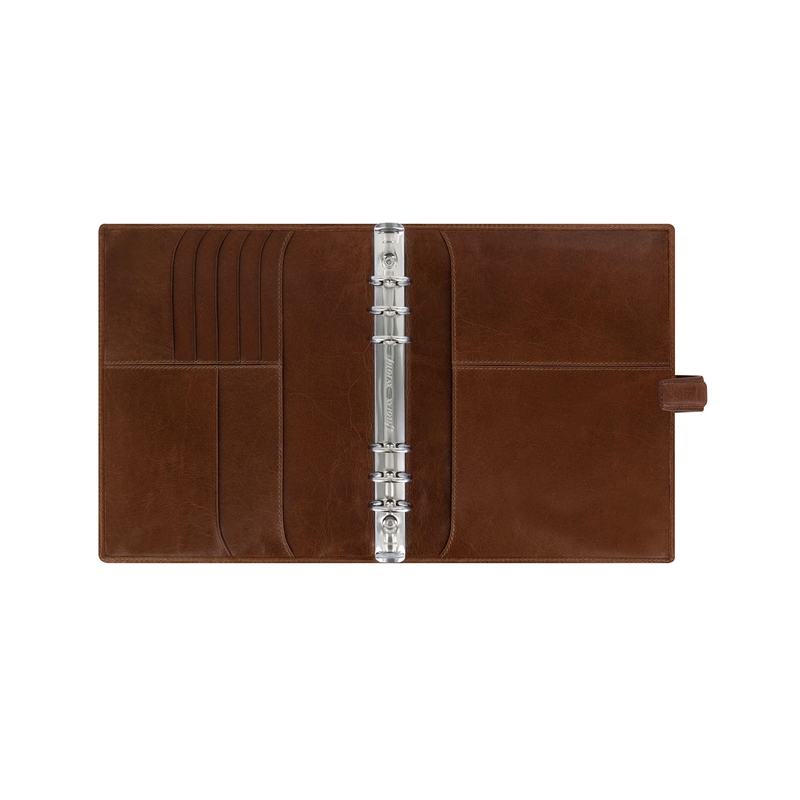 Организирайте ежедневието си с луксозната колекция органайзери, изработенa от пълнозърнеста биволска кожа Lockwood! Те съчетават традиционния стил на марката със съвременен и функционален дизайн. Органайзерът е изработен от висококачествена естествена кожа в цвят коняк. Два външни джоба на кориците. Вътрешната страна на лявата корица разполага с шест джоба за карти. Вътрешната страна на дясната корица разполага с хоризонтален и вертикален джоб и еластичен държач за химикалки. Метална шина с шест ринга и повдигащ (отварящ) механизъм, 25 mm в диаметър. Размери: A5, 23 х 19.5 х 4 cm. Миксирайте и променяйте съдържанието на всички органайзери Filofax с разнообразието от аксесоари. Подредете ежедневието си изцяло по ваш вкус! Пълнеж на органайзера: Предпазна страница; Преден лист; Рекламна страница; Рекламна страница на Filofax App; Годишен планер без дати; 6 разделителя; 8 листа с точки; 8 нелинирани листа; 8 линирани листа; 8 листа за задачи; 8 листа за контакти; 8 сини линирани листа; 8 зелени линирани листа; 8 розови линирани листа; Кафяв линиран лист / лист с индекс; Джоб с горно отваряне.