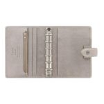 Организирайте ежедневието си с колекцията органайзери Malden на Filofax! Те съчетават традиционния стил на марката със съвременен и функционален дизайн. Органайзерът е изработен от висококачествена кожа в сив цвят. Вътрешната страна на лявата корица разполага с три вертикални джоба, един вертикален джоб с цип. Вътрешната страна на дясната корица разполага с един вертикален джоб, един джоб за бележник и кожен държач за химикалка. Метална шина с шест ринга и повдигащ (отварящ) механизъм, 30 mm в диаметър. Размери: 14.8 х 12.8 х 4 cm. Миксирайте и променяйте съдържанието на всички органайзери Filofax с разнообразието от аксесоари. Подредете ежедневието си изцяло по ваш вкус! Пълнеж на органайзера: Предпазна страница; Преден лист; Рекламна страница; Рекламна страница на Filofax App; Годишен планер без дати; 6 разделителя; 8 листа с точки; 8 нелинирани листа; 8 линирани листа; 8 листа за задачи; 8 листа с контакти; 8 сини линирани листа; 8 зелени линирани листа; 8 розови линирани листа; Кафяв линиран лист / лист с индекс; Джоб с горно отваряне.