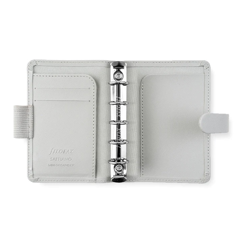 Организирайте ежедневието си с цветната колекция органайзери Saffiano на Filofax! Те съчетават традиционния стил на марката със съвременен и функционален дизайн. Органайзерът е изработен от висококачествена синтетична кожа в цвят гранит. Вътрешната страна на лявата корица разполага с два джоба за карти, един джоб и еластичен държач за химикалка. Метална шина с шест ринга и повдигащ (отварящ) механизъм, 30 mm в диаметър. Размери: 12.3 х 9.5 х 2.5 cm. Миксирайте и променяйте съдържанието на всички органайзери Filofax с разнообразието от аксесоари. Подредете ежедневието си изцяло по ваш вкус! Пълнеж на органайзера: Предпазна страница; Преден лист; Рекламна страница; Рекламна страница на Filofax App; Годишен планер без дати; 4 разделителя; 8 листа с точки; 8 нелинирани листа; 8 линирани листа; 8 листа за задачи; 8 листа с контакти.