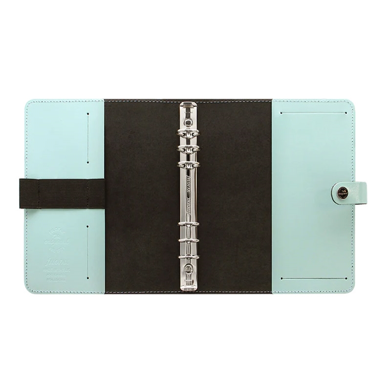 Организирайте ежедневието си с колекцията кожени органайзери The Original на Filofax! Те съчетават традиционния стил на марката със съвременен и функционален дизайн. Органайзерът е изработен от висококачествена кожа в светло син цвят. Вътрешната страна на лявата корица разполага с два джоба за карти, един вертикален джоб, два еластични държача за химикалки и един многофункционален еластичен държач. Вътрешната страна на дясната корица разполага с един вертикален джоб и един джоб за бележник Метална шина с шест ринга и повдигащ (отварящ) механизъм, 30 mm в диаметър. Размери: 23.6 х 20 (включително каишка) х 4.6 cm. Миксирайте и променяйте съдържанието на всички органайзери Filofax с разнообразието от аксесоари. Подредете ежедневието си изцяло по ваш вкус! Пълнеж на органайзера: Прозрачна предпазна страница; Разделители; Контакти; Индекси; Линирани листове за задачи; Листове за бележки; Листове за бележки с линии; Листове за бележки с квадратчета; Цветна хартия за бележки; Седмичен дневник, разграфен на 2 страници; Линия; Прозрачен джоб с горно отваряне.