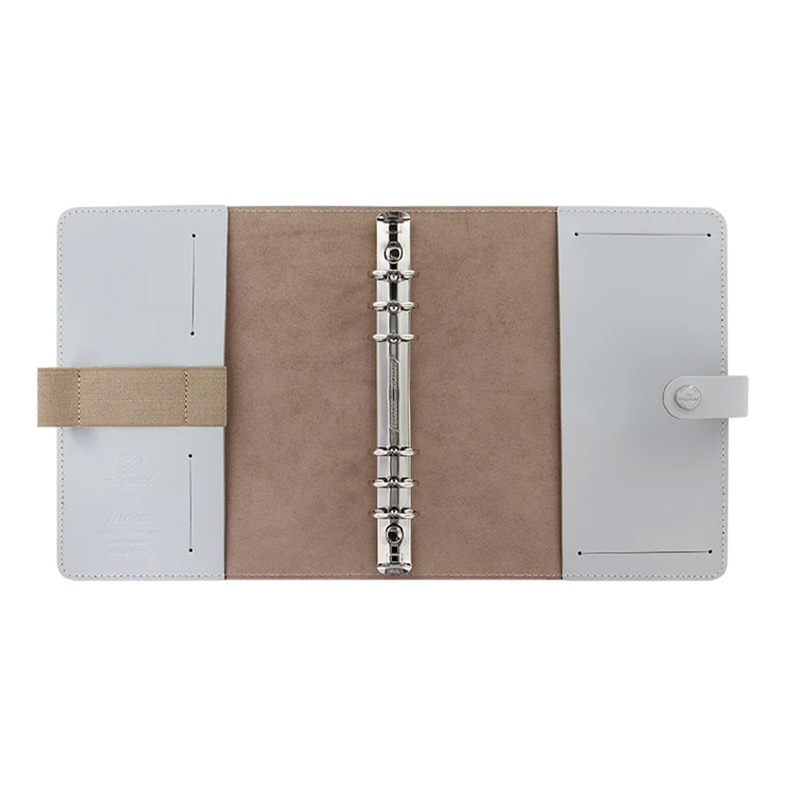 Организирайте ежедневието си с колекцията кожени органайзери The Original на Filofax! Те съчетават традиционния стил на марката със съвременен и функционален дизайн. Органайзерът е изработен от висококачествена кожа в сив цвят. Вътрешната страна на лявата корица разполага с два джоба за карти, един вертикален джоб, два еластични държача за химикалки и един многофункционален еластичен държач. Вътрешната страна на дясната корица разполага с един вертикален джоб и един джоб за бележник Метална шина с шест ринга и повдигащ (отварящ) механизъм, 30 mm в диаметър. Размери: 23.6 х 20 (включително каишка) х 4.6 cm. Миксирайте и променяйте съдържанието на всички органайзери Filofax с разнообразието от аксесоари. Подредете ежедневието си изцяло по ваш вкус! Пълнеж на органайзера: Предпазна страница; Преден лист; Рекламна страница; Рекламна страница на Filofax App; Годишен планер без дати; 6 разделителя; 8 листа с точки; 8 нелинирани листа; 8 линирани листа; 8 листа за задачи; 8 листа с контакти; 8 сини линирани листа; 8 зелени линирани листа; 8 розови линирани листа; Прозрачен лист / лист с индекс; Джоб с горно отваряне; Пад с листа на точки (20 листа).
