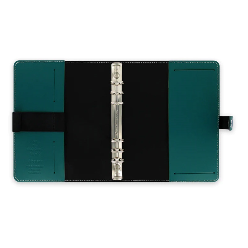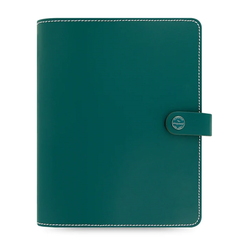 Организирайте ежедневието си с колекцията кожени органайзери The Original на Filofax! Те съчетават традиционния стил на марката със съвременен и функционален дизайн. Органайзерът е изработен от висококачествена кожа в цвят тъмна аква. Вътрешната страна на лявата корица разполага с два джоба за карти, един вертикален джоб, два еластични държача за химикалки и един многофункционален еластичен държач. Вътрешната страна на дясната корица разполага с един вертикален джоб и един джоб за бележник Метална шина с шест ринга и повдигащ (отварящ) механизъм, 30 mm в диаметър. Размери: 23.6 х 20 (включително каишка) х 4.6 cm. Миксирайте и променяйте съдържанието на всички органайзери Filofax с разнообразието от аксесоари. Подредете ежедневието си изцяло по ваш вкус! Пълнеж на органайзера: Предпазна страница; Преден лист; Рекламна страница; Рекламна страница на Filofax App; Годишен планер без дати; 6 разделителя; 8 листа с точки; 8 нелинирани листа; 8 линирани листа; 8 листа за задачи; 8 листа с контакти; 8 сини линирани листа; 8 зелени линирани листа; 8 розови линирани листа; Прозрачен лист / лист с индекс; Джоб с горно отваряне; Пад с листа на точки (20 листа).