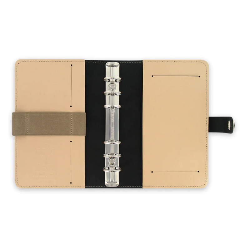 Организирайте ежедневието си с колекцията кожени органайзери The Original на Filofax! Те съчетават традиционния стил на марката със съвременен и функционален дизайн. Органайзерът е изработен от висококачествена кожа в бежов цвят. Вътрешната страна на лявата корица разполага с два джоба за карти, един вертикален джоб, два еластични държача за химикалки и един многофункционален еластичен държач. Вътрешната страна на дясната корица разполага с един вертикален джоб и един джоб за бележник Метална шина с шест ринга и повдигащ (отварящ) механизъм, 30 mm в диаметър. Размери: Personal, 18.8 х 13.5 х 3.8 cm. Миксирайте и променяйте съдържанието на всички органайзери Filofax с разнообразието от аксесоари. Подредете ежедневието си изцяло по ваш вкус! Пълнеж на органайзера: Предпазна страница; Преден лист; Рекламна страница; Рекламна страница на Filofax App; Годишен планер без дати; 6 разделителя; 8 листа с точки; 8 нелинирани листа; 8 линирани листа; 8 листа за задачи; 8 листа с контакти; 8 сини линирани листа; 8 зелени линирани листа; 8 розови линирани листа; Прозрачен лист / лист с индекс; Джоб с горно отваряне; Пад с листа на точки (20 листа).