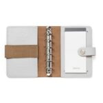 Организирайте ежедневието си с колекцията кожени органайзери The Original на Filofax! Те съчетават традиционния стил на марката със съвременен и функционален дизайн. Органайзерът е изработен от висококачествена кожа в сив цвят. Вътрешната страна на лявата корица разполага с един джоб, два еластични държача за химикалки и един многофункционален еластичен държач. Вътрешната страна на дясната корица разполага с един джоб и един джоб за бележник. Метална шина с шест ринга и повдигащ (отварящ) механизъм, 30 mm в диаметър. Размери: 14.5 х 12.7 х 3.5 cm. Миксирайте и променяйте съдържанието на всички органайзери Filofax с разнообразието от аксесоари. Подредете ежедневието си изцяло по ваш вкус! Пълнеж на органайзера: Предпазна страница; Преден лист; Рекламна страница; Рекламна страница на Filofax App; Годишен планер без дати; 6 разделителя; 8 листа с точки; 8 нелинирани листа; 8 линирани листа; 8 листа за задачи; 8 листа с контакти; 8 сини линирани листа; 8 зелени линирани листа; 8 розови линирани листа; Прозрачен лист / лист с индекс; Джоб с горно отваряне; Пад с листа на точки (20 листа).