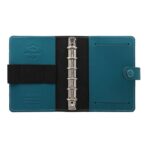 Организирайте ежедневието си с колекцията кожени органайзери The Original на Filofax! Те съчетават традиционния стил на марката със съвременен и функционален дизайн. Органайзерът е изработен от висококачествена кожа в цвят тъмна аква. Вътрешната страна на лявата корица разполага с един джоб, два еластични държача за химикалки и един многофункционален еластичен държач. Вътрешната страна на дясната корица разполага с един джоб и един джоб за бележник. Метална шина с шест ринга и повдигащ (отварящ) механизъм, 30 mm в диаметър. Размери: 14.5 х 12.7 х 3.5 cm. Миксирайте и променяйте съдържанието на всички органайзери Filofax с разнообразието от аксесоари. Подредете ежедневието си изцяло по ваш вкус! Пълнеж на органайзера: Предпазна страница; Преден лист; Рекламна страница; Рекламна страница на Filofax App; Годишен планер без дати; 6 разделителя; 8 листа с точки; 8 нелинирани листа; 8 линирани листа; 8 листа за задачи; 8 листа с контакти; 8 сини линирани листа; 8 зелени линирани листа; 8 розови линирани листа; Прозрачен лист / лист с индекс; Джоб с горно отваряне; Пад с листа на точки (20 листа).