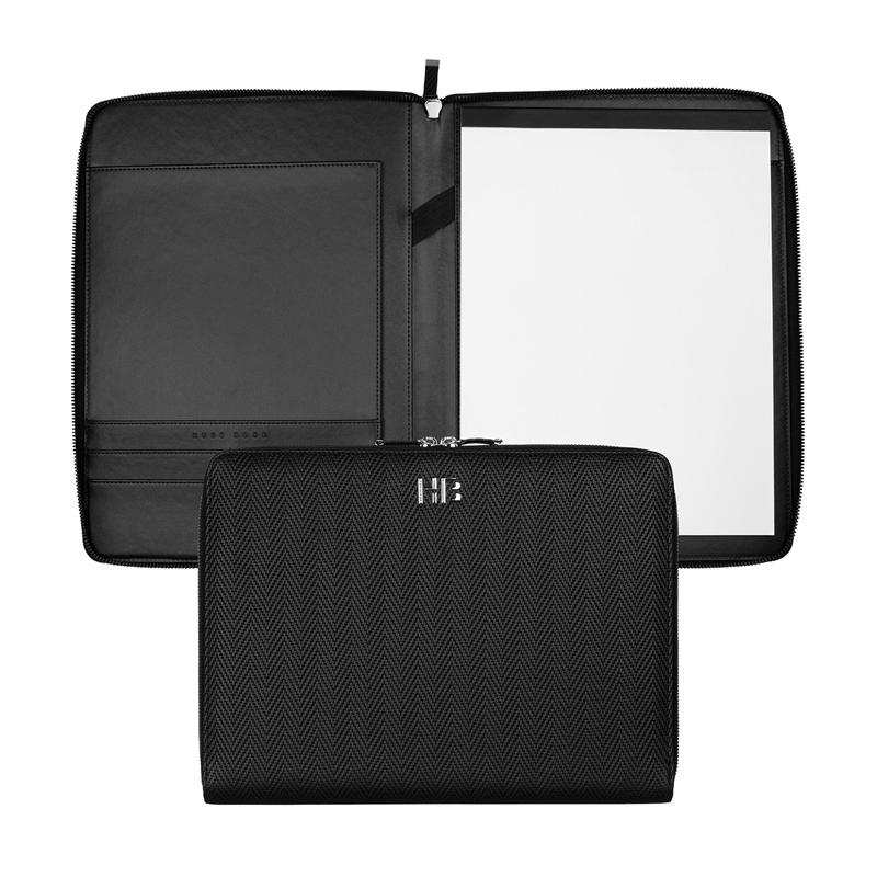 Hugo Boss Конферентна папка Herringbone, A4, с цип, черна